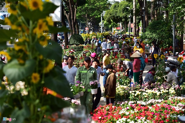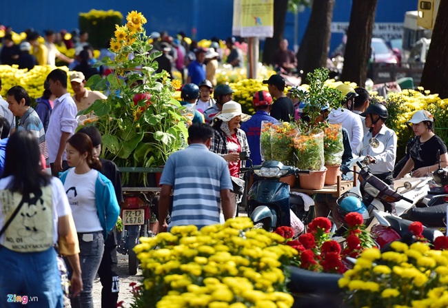 Sáng 30 Tết, người dân đổ xô tới chợ hoa công viên 23/9 (quận 1)- một trong những chợ hoa lớn nhất TP.HCM để mua hoa đại hạ giá trước thời điểm đóng cửa.