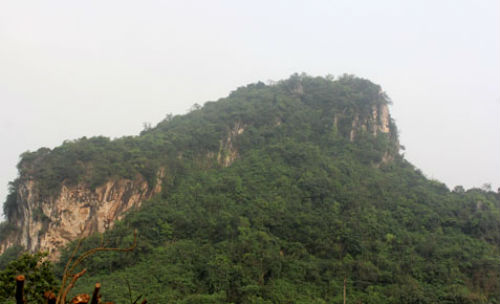 Quả núi Cóc hùng vĩ mọc lên giữa thung lũng. |