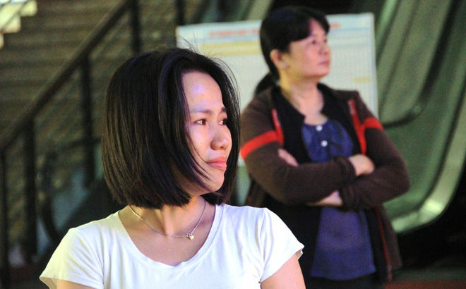 Chị Nhung bật khóc vì lỡ chuyến tàu do kẹt xe. Ảnh Trí thức trẻ. |