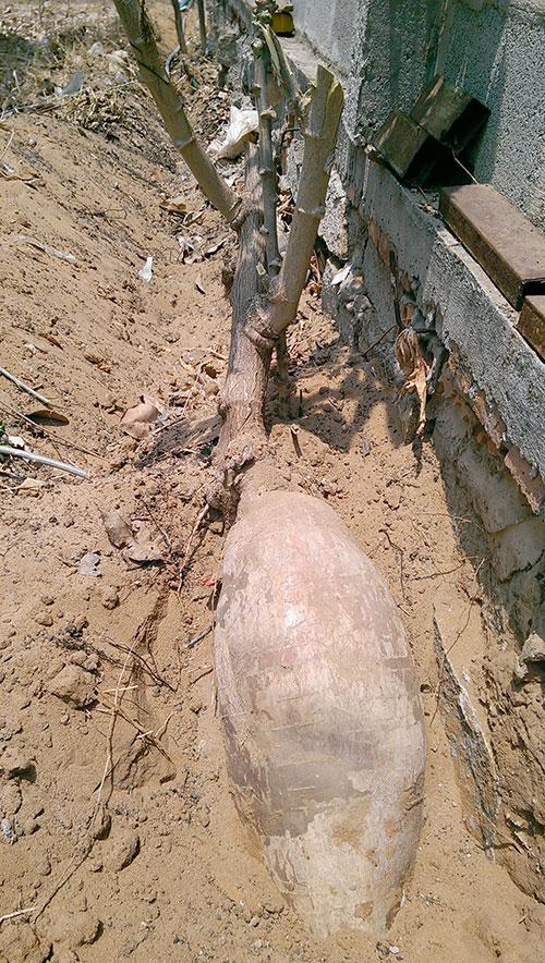 Anh Việt cho biết, hàng mì được gia đình anh trồng vài năm trước và phát triển bình thường. Khi đào lên có củ to có đường kính hơn 25cm, dài 80cm, trọng lượng lên đến 16kg.