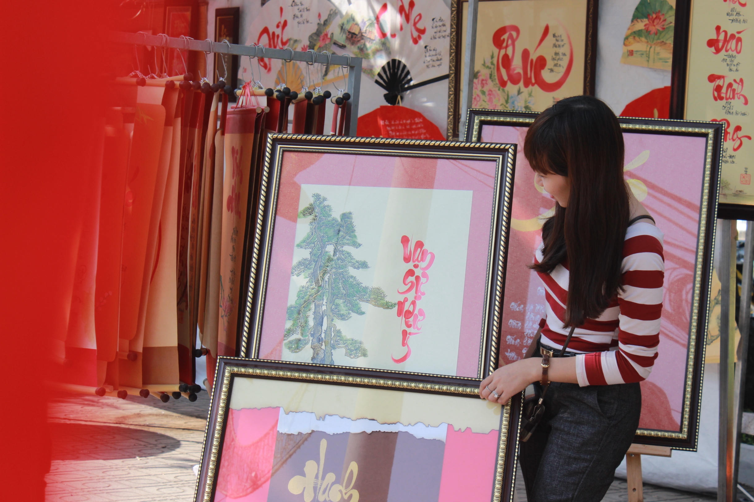 Không chỉ những người già mà rất nhiều bạn trẻ cũng đến phố ông đồ tại Biên Hòa để xin chữ và ngắm những bức tranh thư pháp tuyệt đẹp. Mỗi bức tranh thư pháp có giá dao động từ 50 ngàn – 500 ngàn, tùy vào mức độ lớn bé cũng như được trang trí bằng khung nào.