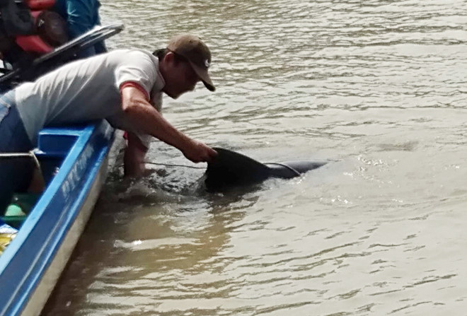 Nhóm ngư dân sau đó tổ chức giải cứu loài cá quý bằng cách chở con vật đến nơi nước sâu. Sau khi chăm sóc, cá heo đã tỉnh lại và bơi ra biển.