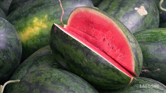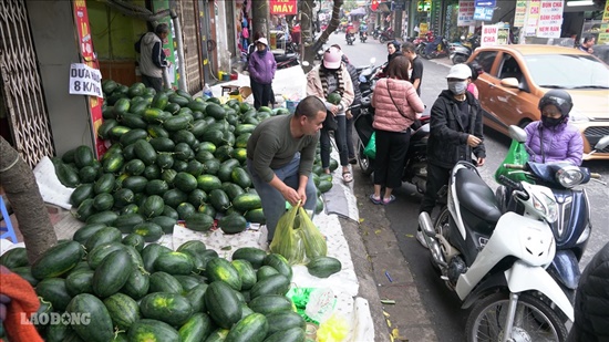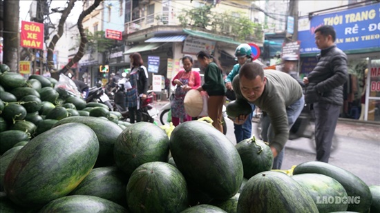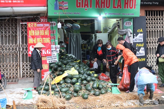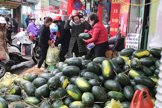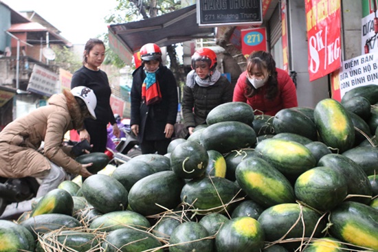 Người dân tập trung mua dưa hấu với số lượng lớn. |