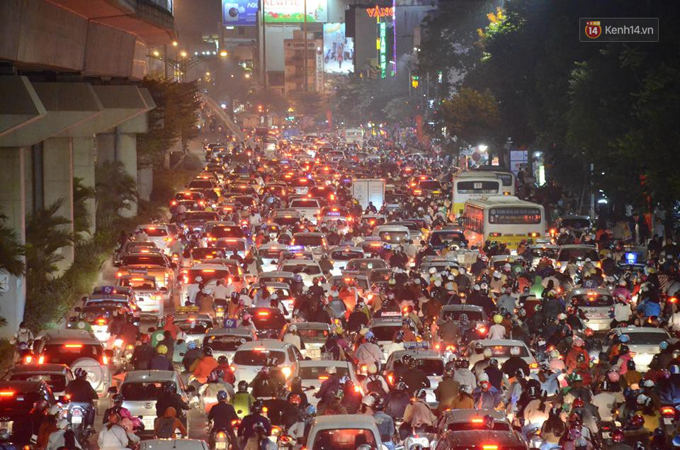 Khu vực đường Nguyễn Trãi, khoảng 20h tối 24/12, dòng xe đã chen kín đoạn đường dài. |