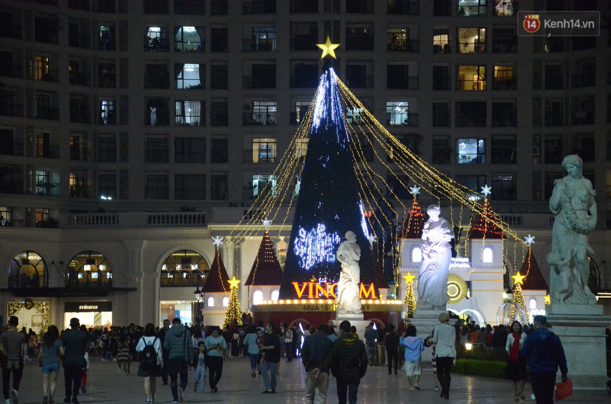 Tại quảng trường Royal City ở Hà Nội, nhiều bạn trẻ diện trang phục mùa đông đi đón Giáng sinh ngay từ 19h30. |