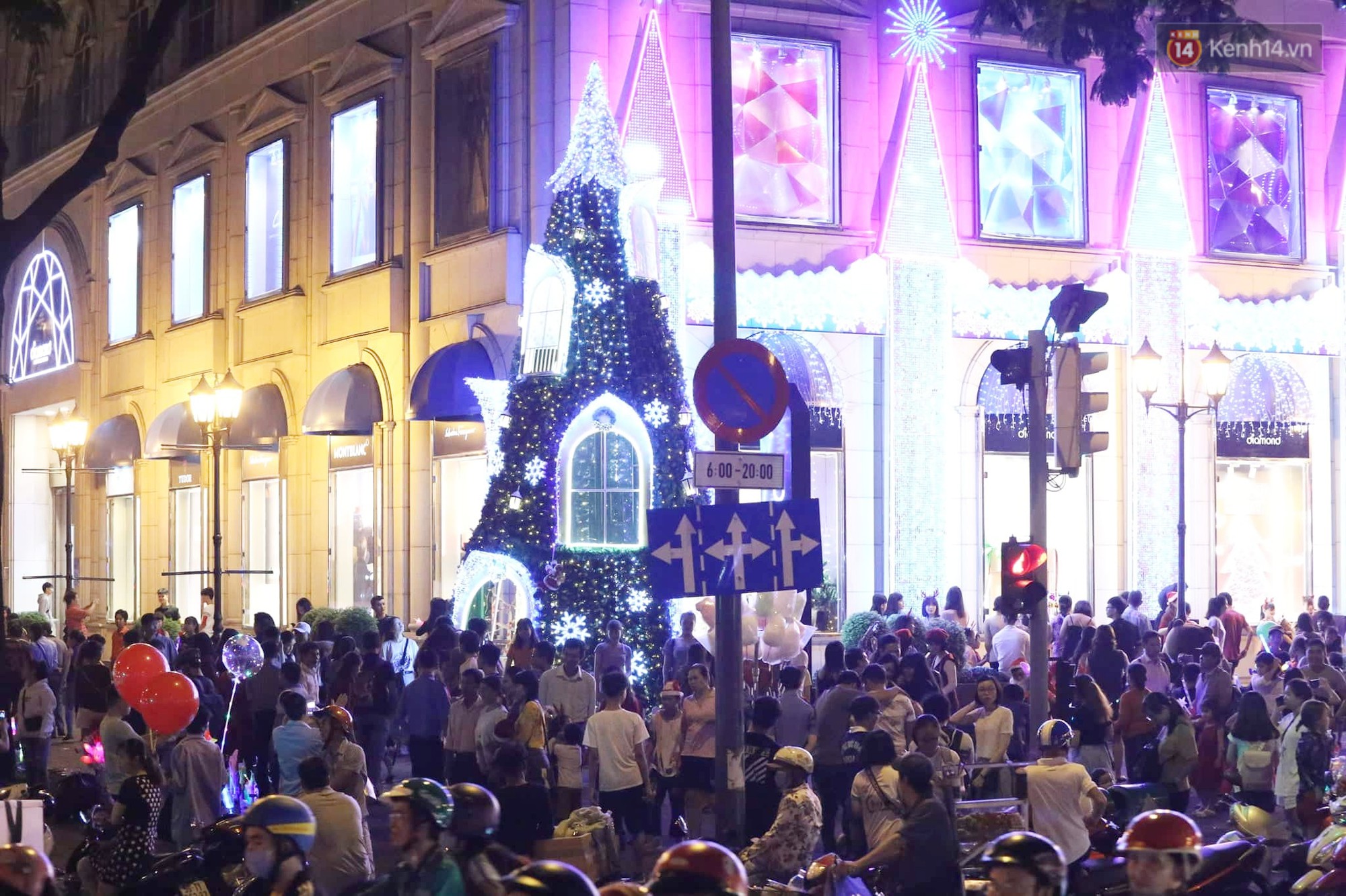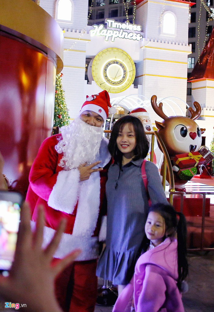 Tối 24/12, nhiều người dân ở Hà Nội, Sài Gòn đã bắt đầu đổ về trung tâm thành phố, trung tâm thương mại nơi có ánh đèn, tiểu cảnh trang trí Noel để vui chơi.