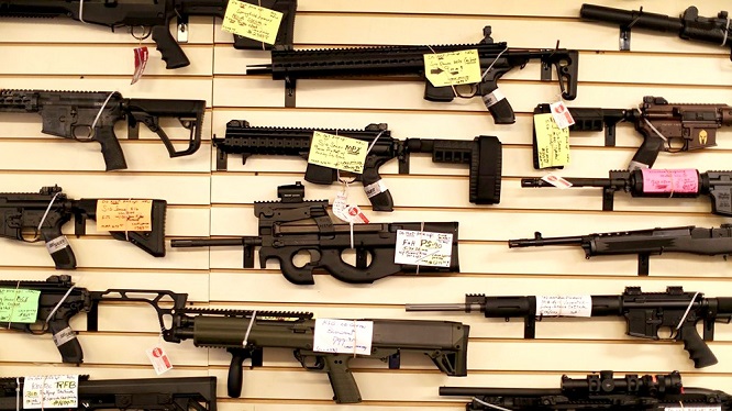 Các loại súng được bày bán trong một cửa hàng tại New Zealand. Ảnh: Getty |