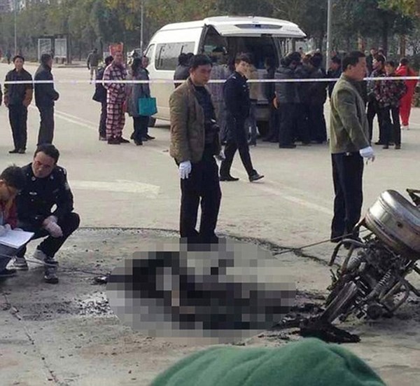 Chiếc xe bốc cháy cùng người đàn ông xấu số tại hiện trường. |