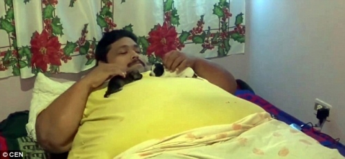 Người đàn ông béo nhất thế giới năm nay 37 tuổi, đã không thể đi lại, thậm chí nằm bẹp tại giường trong nhiều năm gần đây do trọng lượng quá lớn và mắc nhiều loại bệnh nghiêm trọng do béo phì gây nên.