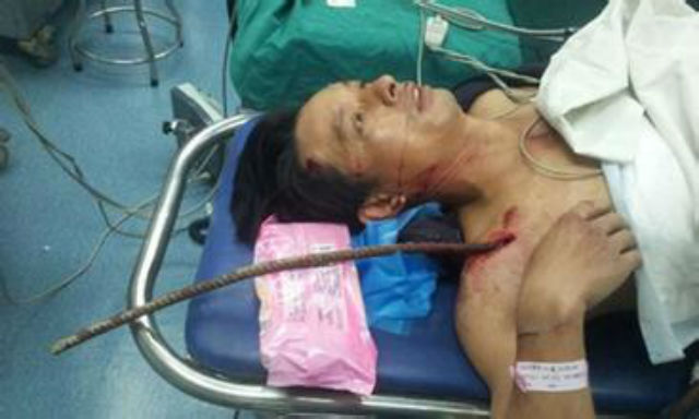 Một nạn nhân bị thanh sắt đâm. |