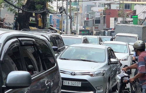 Trước tình huống dở khóc dở cười này, hàng nghìn phương tiện đang lưu thông trên đường Xô Viết Nghệ Tĩnh (đoạn qua địa bàn phường 25 và 26, quận Bình Thạnh, TP.HCM) đã bị chôn chân tại chỗ vì tắc đường, không thể di chuyển.