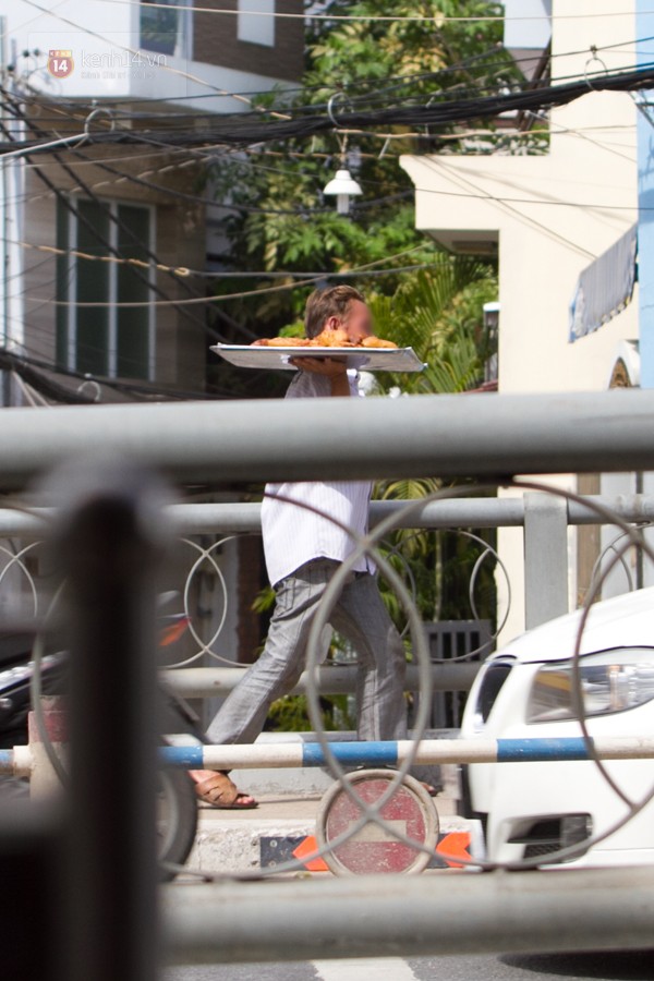 11h15 ngày 1/7 trên đường Khánh Hội (Quận 4, TP. HCM) ông làm đổ mâm bánh ra đường và bắt đầu lúi húi nhặt từng miếng bánh... |