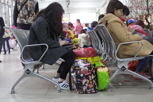 Hầu hết mọi người đều mang theo rất nhiều đồ đạc, quà Tết để mang về quê. |