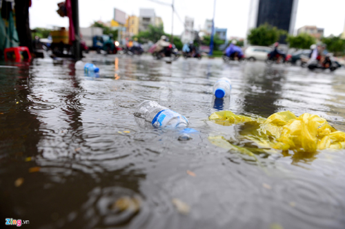 | Rác nổi lềnh bềnh sau cơn mưa. |