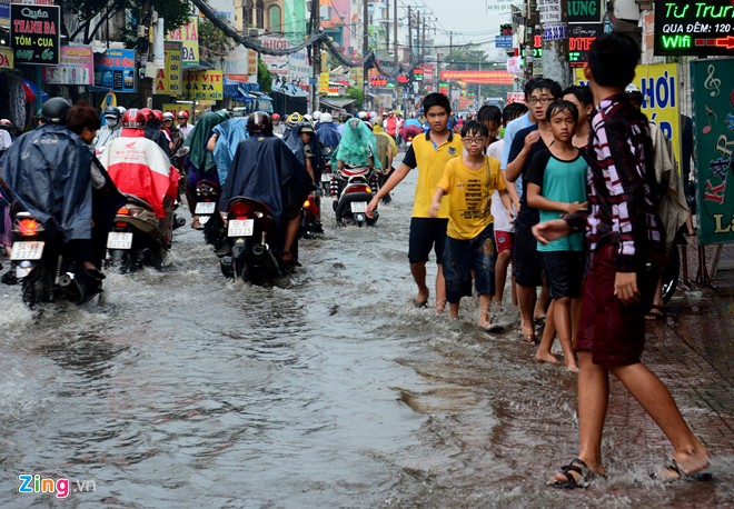 Ngập nặng nhất là đường Tân Hóa (quận 6), nước ngập gần 1m kéo dài hơn 1km. Hàng loạt phương tiện ô tô, xe máy bị chết máy. Nhiều người hì hục trong dòng nước đen ngòm cố đẩy xe ra vùng ngập nước. Mỗi khi có xe ô tô, xe tải chạy ngang qua tạo thành làn sóng đánh nước văng tung tóe. Một số nhà dân hai bên đường bị nước tràn vào phải dùng nhiều vật dụng bao cát để chắn nước.