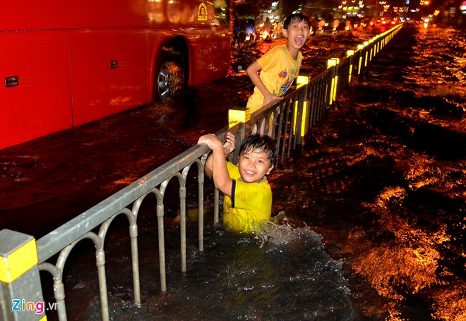Taxi và nhiều ôtô tăng tốc độ gây sóng đánh sang hai bên làm liêu xiêu tay lái người đi xe máy. Một số trẻ em tại khu vực ngập nước trên đường Kinh Dương Vương đùa giỡn, bơi giữa đường. Nhiều hoạt động kinh doanh tại những tuyến đường ngập nước bị ngưng trệ hoàn toàn. Nước rút rất chậm, đến 21h tối khu vực này vẫn như một con sông.