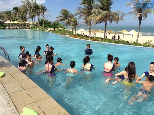 | Trước đó, các thí sinh người đẹp còn tham gia dạy các kỹ năng bơi cho trẻ em địa phương nhằm giúp các em tăng cường khả năng tự bảo vệ khỏi tai nạn đuối nước. |