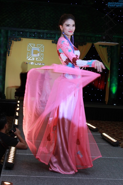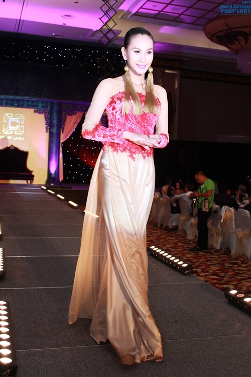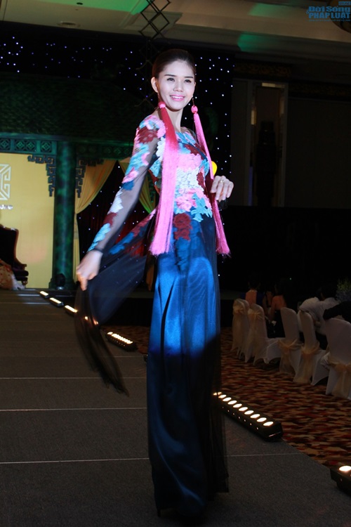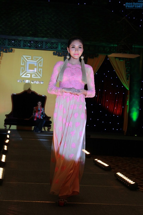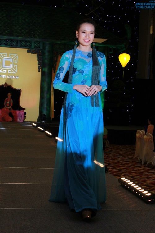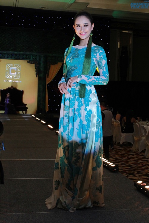 | Trong đêm Gala 10/5, các thí sinh đều thướt tha trong những tà áo dài của NTK Võ Việt Chung trình diễn và đấu giá thành công để góp vào Quỹ Blue Ocean World. |