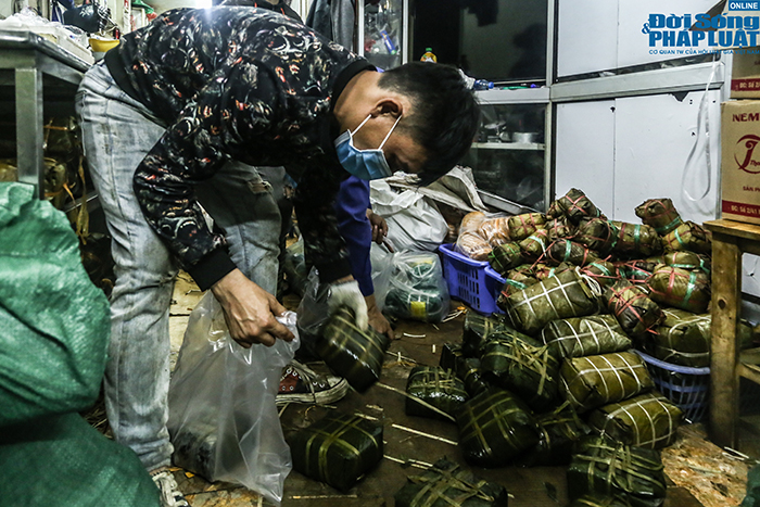 Theo quan sát, hầu hết người dân đều mua hàng chục chiếc bánh chưng để cúng gia tiên và làm quà tặng. |