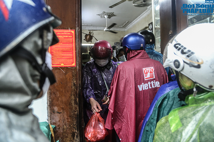Vì diện tích hẹp nên cửa hàng chỉ cho phép 2 khách vào mỗi lượt. Càng về trưa, trời đổ mưa nặng hạt nhưng dòng người xếp hàng vẫn nối dài, tạo nên khung cảnh làm nhiều người hồi tưởng tới thời kỳ bao cấp ở Hà Nội. |