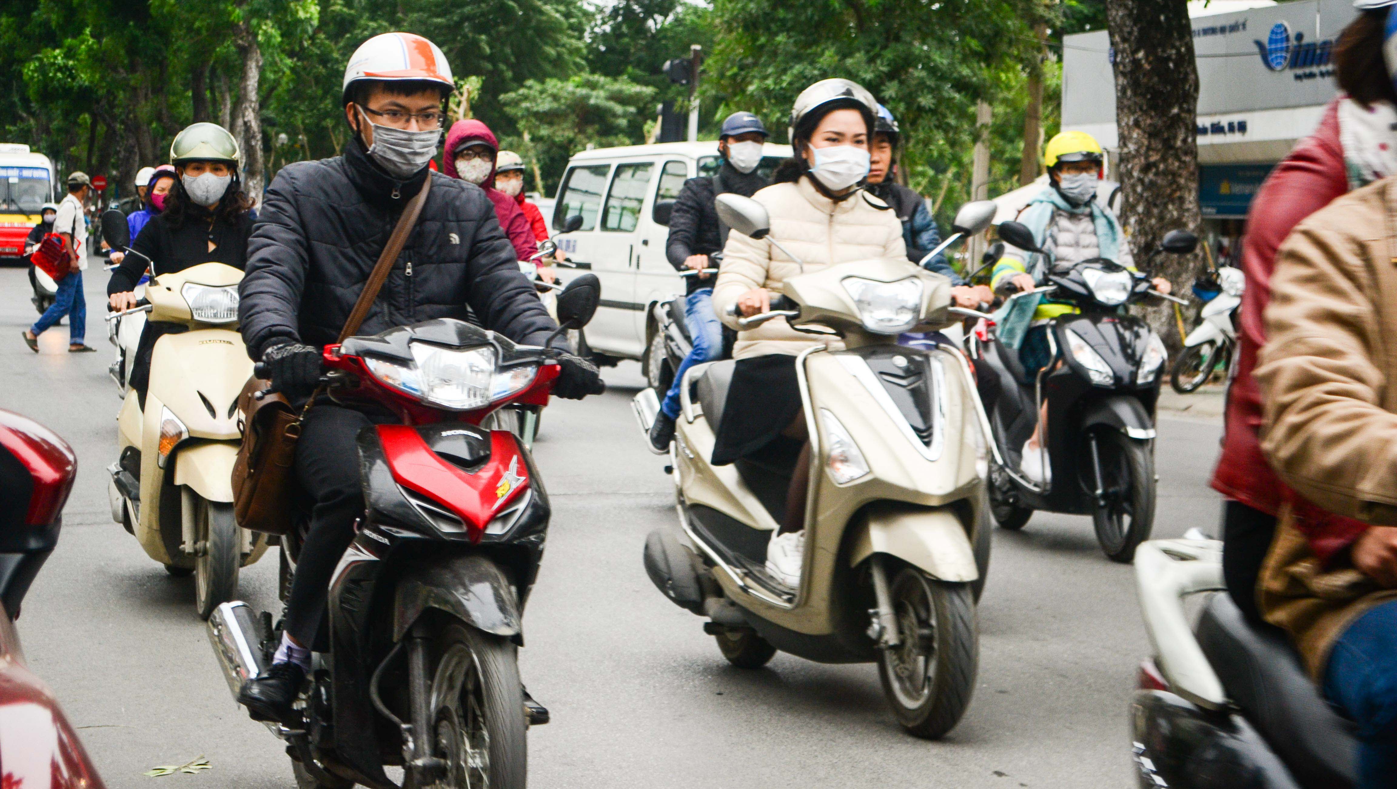 | | Người tham gia giao thông co ro trong gió rét. |