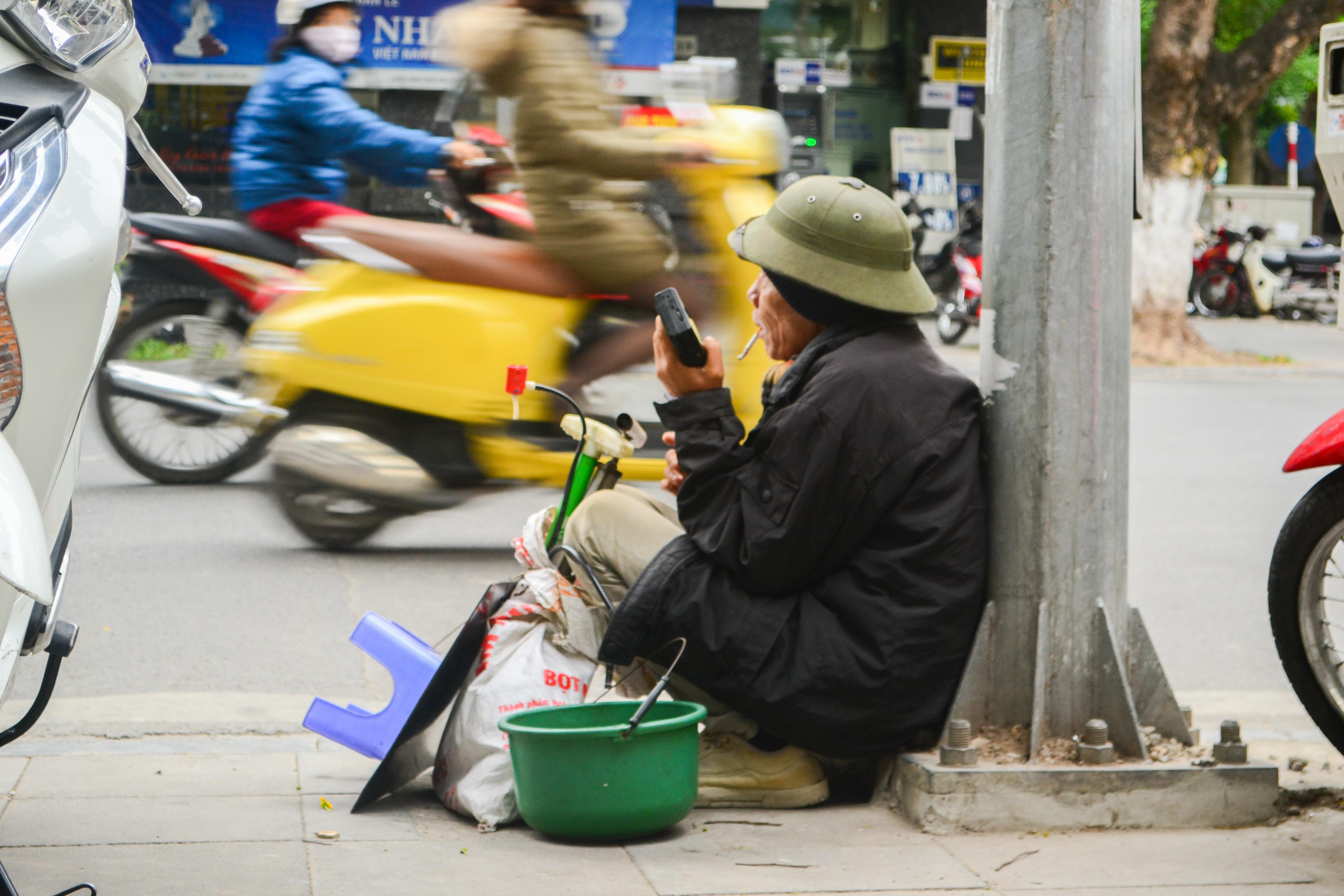 | | Người đàn ông này vẫn phải mưu sinh trong gió lạnh. |