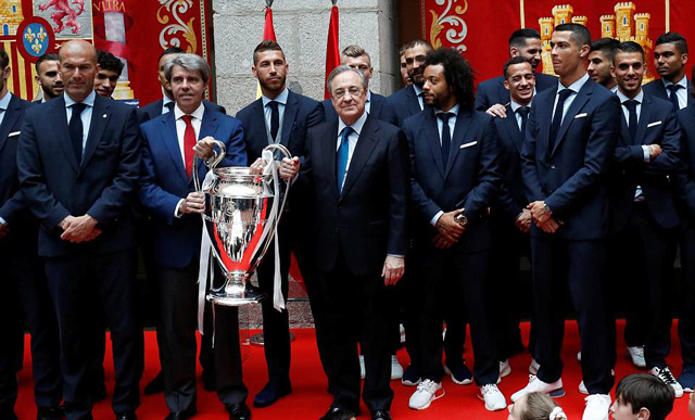 Thị trưởng thành phố Madrid chúc mừng chiến tích của Real Madrid. |