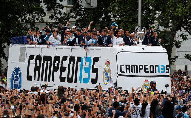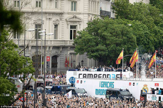 Hàng ngàn người hâm mộ đã có mặt lễ diễu hành hoành tráng ăn mừng chức vô địch Champions League lần thứ 13 trong lịch sử của Real Madrid.