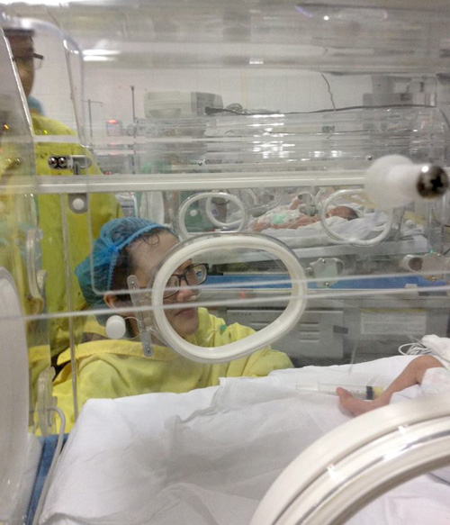 Bác sĩ có tư vấn nếu muốn điều trị triệt để cho mẹ thì nên đình chỉ thai nghén nhưng thai phụ vẫn quyết tâm giữ con. Suốt hơn 1 tháng trong bệnh viện, chị Trâm không được nằm mà chỉ ngồi để hy vọng rằng đứa con của mình có thể cất tiếng khóc chào đời.