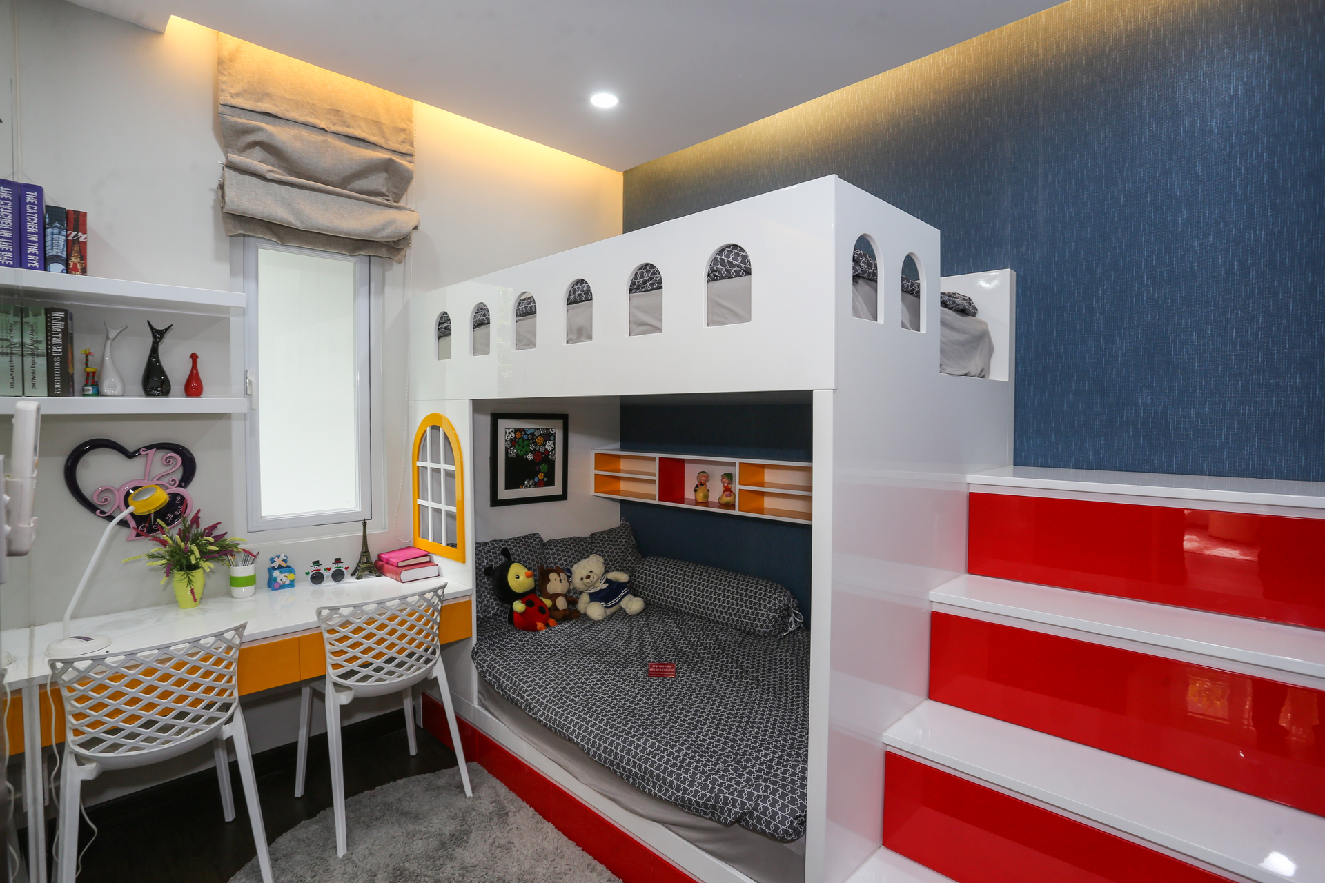 Phòng ngủ các bé nhiều màu sắc tươi tắn, vui vẻ.