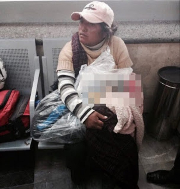 Sự việc xảy ra ở trạm xe bus Tapo ở thành phố Mexico vào đầu tháng 12/2017. Những người đi qua trạm xe bus này đều không khỏi khó hiểu khi nhìn thấy một người phụ nữ bộ dạng lam lũ, nghèo khó ngồi ở một góc, tay ôn chặt một bọc nilon.