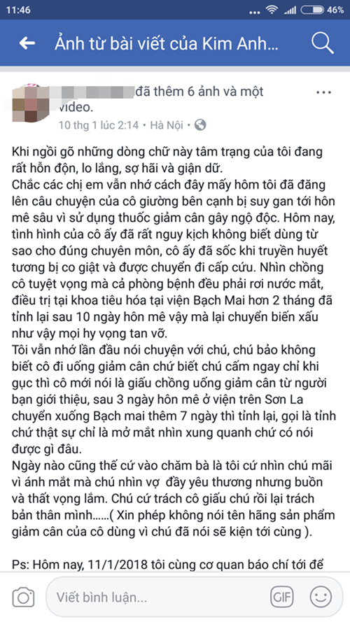 Mới đây một tài khoản facebook đã chia sẻ về trường hợp một người phụ nữ bị suy gan phải nằm viện điều trị sau khi sử dụng thực phẩm chức năng giảm cân khiến nhiều người lo sợ.