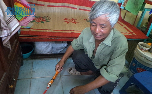 | Ông Tuất khi sinh sống tại túp lều rách (ảnh chụp tháng 12/2013). |