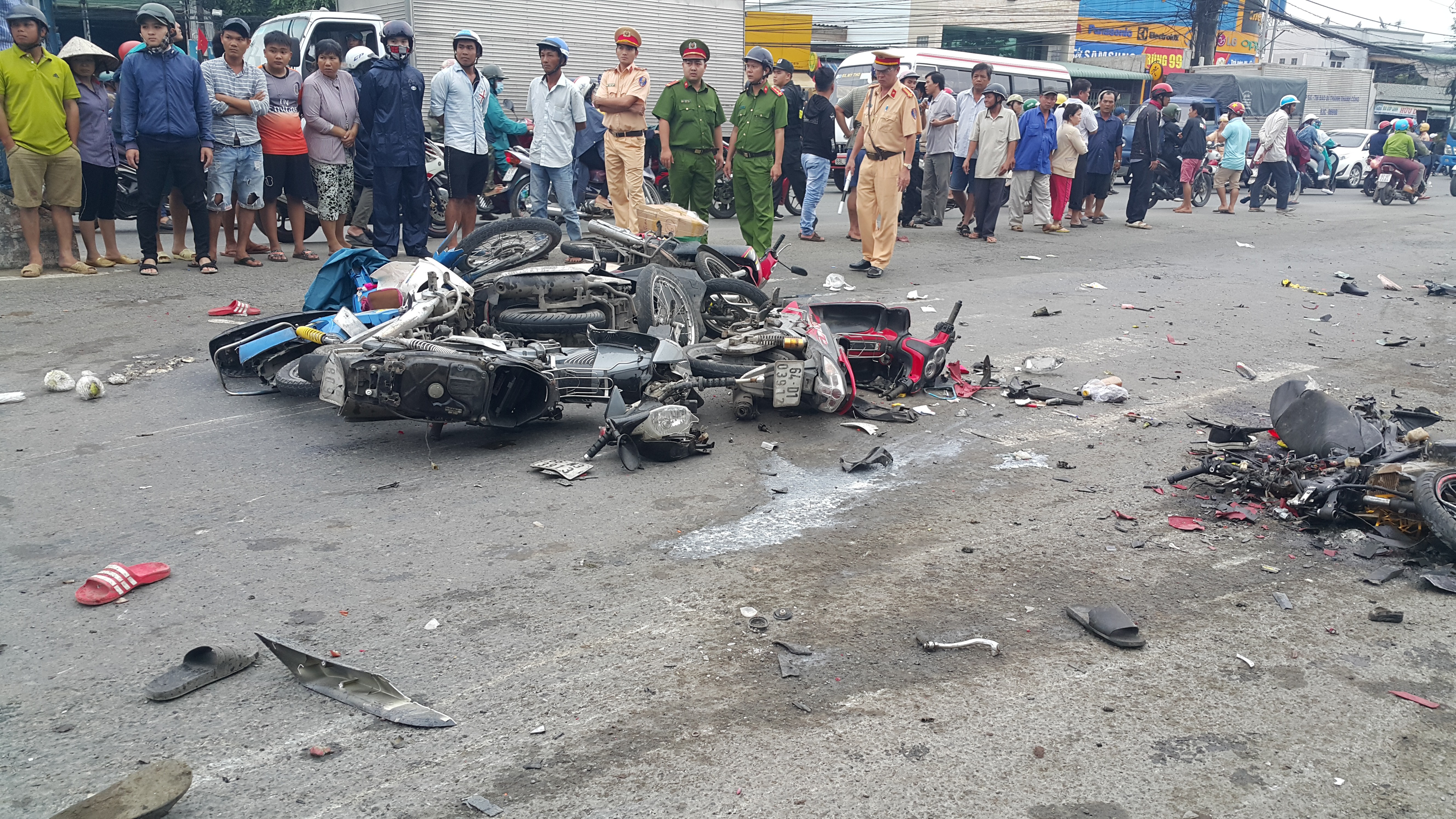 Hiện trường vụ tai nạn giao thông ở Long An, 4 người tử vong. Ảnh: Người Đưa tin |