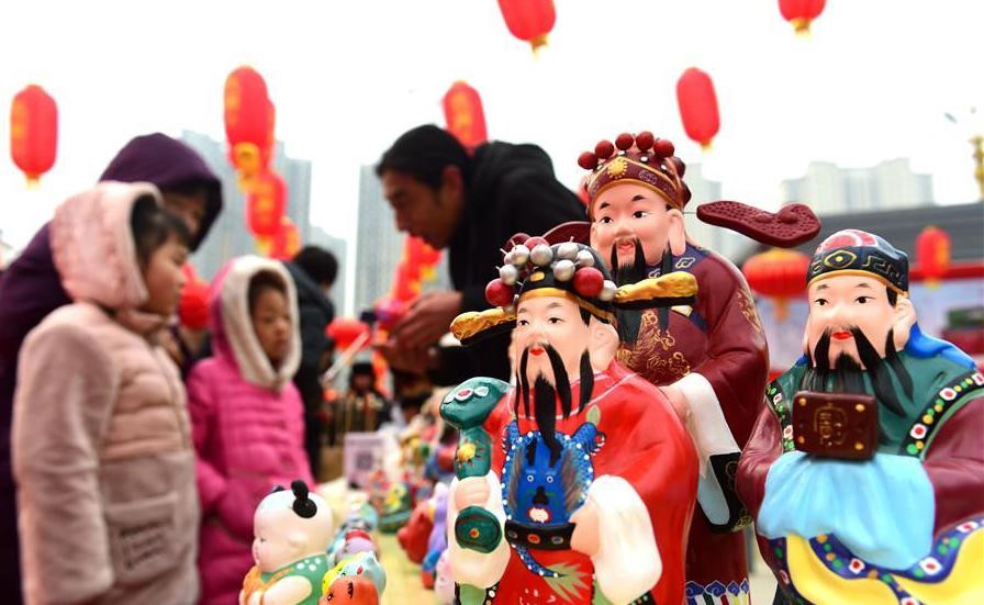 Tượng Thần Tài bằng đất sét được bày bán tại Cangzhou, tỉnh Hà Bắc ở phía bắc Trung Quốc |