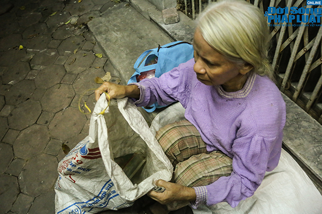 Cách đó không xa là chỗ ngủ của bà Nguyễn Thị Hoa (75 tuổi). Không có con cháu, bà Hoa kiếm sống bằng nghề nhặt ve chai. |