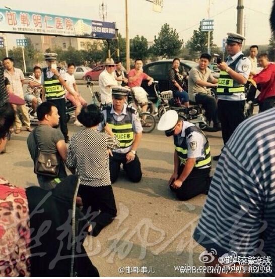 Một đoạn chia sẻ trên mạng xã hội với nội dung “Cảnh sát giao thông Hàm Đan và người dân quỳ lạy nhau trên đường” cùng một tấm hình minh họa đã gây xôn xao dư luận Trung Quốc.