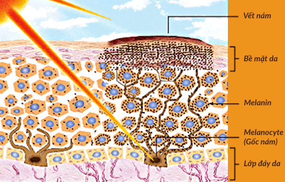 Tế bào melanocytes được coi là nhà máy sản sinh ra sắc tố melanin và trong nhiều trường hợp là gốc nám. Nguồn: Bảo Mỹ Xuân |