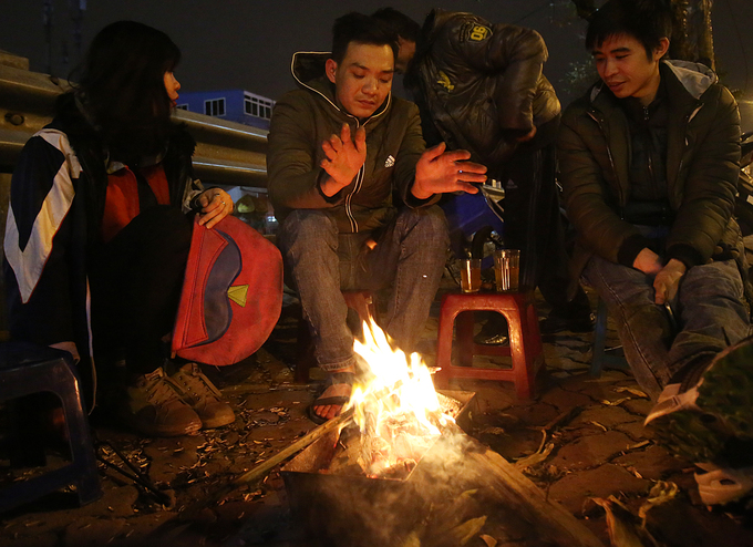 Người dân đốt lửa chống lạnh giữa thủ đô. Ảnh: VnExpress |
