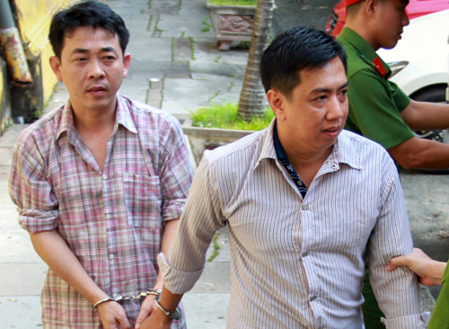| Cựu chủ tịch VN Pharma và đồng phạm Cường đến tòa sáng nay - Ảnh: Vnexpress |