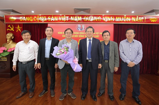 Bí thư Đảng uỷ cơ quan Trung ương hội Luật gia Việt Nam Lê Minh Tâm tặng hoa chúc mừng Ban Chi uỷ nhiệm kỳ 2020 - 2022. |