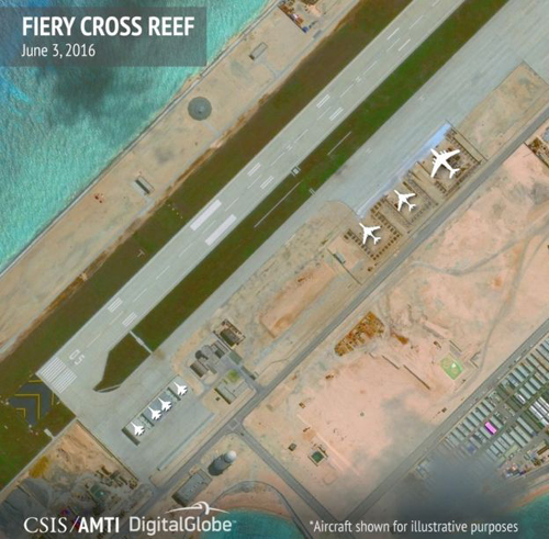 Những hình ảnh vệ tinh dường như cho thấy Trung Quốc đã xây dựng các kho chứa máy bay chiến đấu trên những đảo tranh chấp ở Biển Đông. Các hình ảnh từ cuối tháng 7, được tổ chức Sáng kiến Minh bạch Hàng hải châu Á đưa ra dường như xác nhận rằng chiến đấu cơ của Trung Quốc có thể sẽ được triển khai tại Đá Vành Khăn, Subi và Chữ Thập tại quần đảo Trường Sa của Việt Nam.