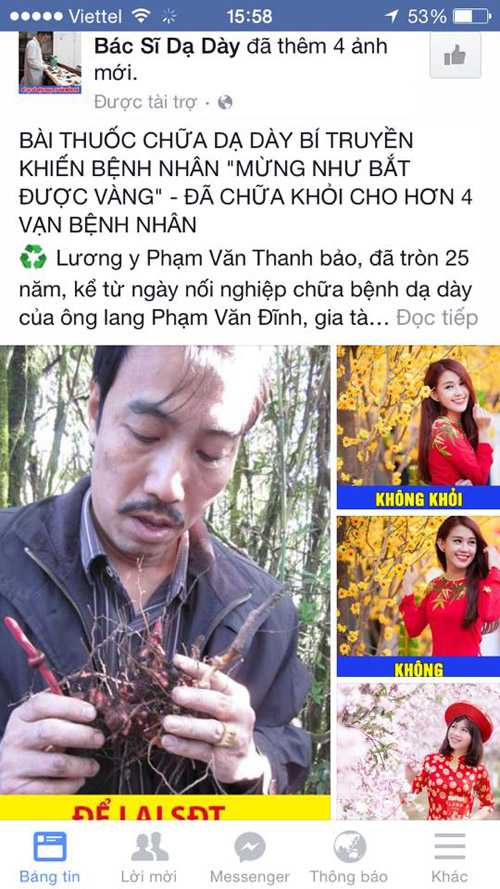 | Lương y Phạm Văn Thanh bị chúng cấy thêm râu tóc, cấy thêm củ thuốc trên tay, để quảng cáo thuốc giả cho chúng. Lương y Thanh rất bức xúc, nhiều lần gọi điện yêu cầu chúng gỡ hình ảnh, nhưng chúng ngang nhiên thách thức. |