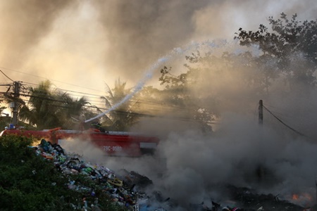 Nhận được tin báo, lực lượng chữa cháy chuyên nghiệp đã điều động hàng chục cán bộ, chiến sĩ cùng hai chữa cháy đến hiện trường dập lửa. Sau nhiều giờ dập lửa liên tục, đám cháy cơ bản đã được khống chế. Tuy vậy, đến khoảng 4h cùng ngày, ngọn lửa tiếp tục bùng phát và lan rộng về phía trung tâm bãi tập kết phế liệu.