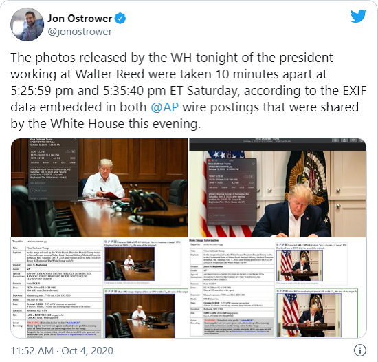 Những bức ảnh được Nhà Trắng công bố công khai nhằm trấn an tinh thần người Mỹ về tình hình sức khỏe của tổng thống, bởi những thông tin trái chiều từ nhiều nguồn tin khác nhau cũng như những tin đồn xoay quanh ngày càng nhiều hơn.