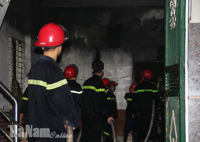 Lực lượng cảnh sát PCCC có mặt kịp thời dập tắt đám cháy - Ảnh: Báo Hà Nam online |