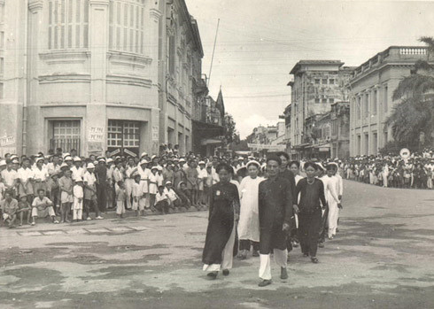 Người dân đi tham gia tuần lễ vàng 1945 |