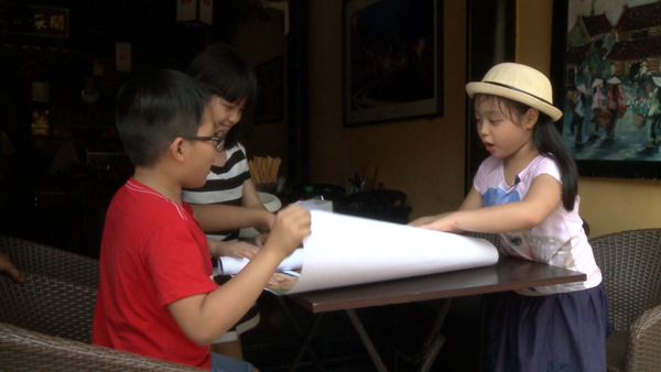 Các bé được tự di chuyển bằng xích lô mini và tự đạp xe vòng quanh phố cổ, hỏi người dân những địa điểm nổi tiếng để tìm đến.