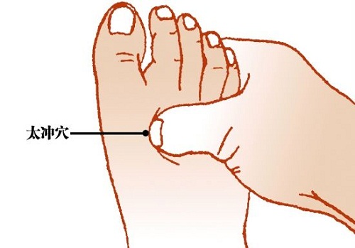 Huyệt thải độc gan: là huyệt chỉ thái trung, huyệt nằm ở chỗ lõm phía trước phần giao nhau của xương ngón chân cái và ngón bên cạnh trên mu bàn chân. Dùng ngón tay cái day 3-5 phút, đến khi cảm thấy hơi tê tê là được. Không nên day quá mạnh, lần lượt day hai bên chân.