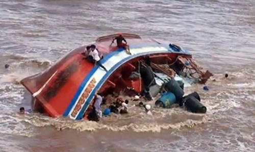 Chiếc tàu chở hàng chục người bị lật úp - Ảnh: báo VnExpress |